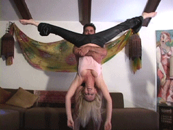 Robin loves to lift and she is lifting Kristiana effortlessly! Kristiana is looking hot in her skin tight shiny gold pants as Robin spins her on her shoulders, over her shoulders, in her arms like a baby, on her back and in a front lift dance! Steve wants to join in and lift Kristiana but he complains about her being heavy! Robin lifts Steve and shows off her strength! Robin then takes turns lifting the 2 of them! Robin is so strong for a small gal! She is sexy and she is stunning as she smiles and giggles and has so much fun doing these lifts!!!