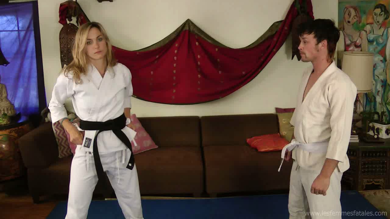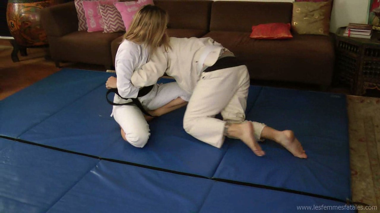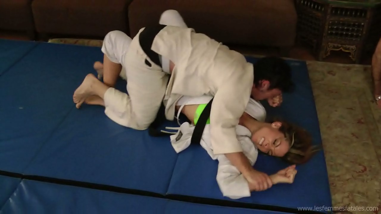 Description of V643 Mixed Competitive Fighting in Judo Gis! Julie Squeeze vs Rhino (Pins Only)