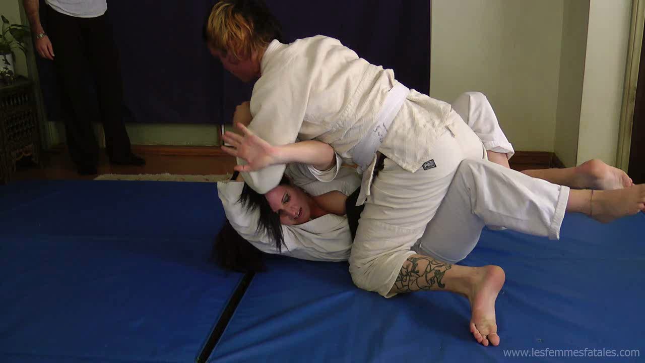 V747 Competitive Mixed Wrestling for Pins in Judo Gis! Mutiny vs RhinoThis is a great Mixed Pins Only match between our sexy gal Mutiny and her ever willing opponent Rhino. Rhino has improved his skills, but Mutiny is a formidable opponent and she is not about to be shown up by some young upstart! Not to mention she is so damn sexy and we love to watch her WRESTLE! A great match that mixed fans will enjoy!