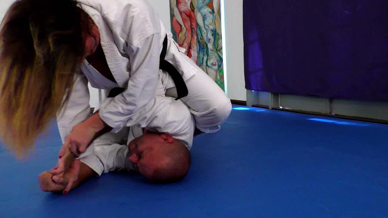 Training to maintain Mount Position, Alex and Kristiana engage in a contest! Whoever can keep his/her opponent for 20 seconds in mount position gains a point. The first to gain 5 points wins the contest. This is not an easy thing to do. We flipped a coin, Kristiana won so she sat in a mount pin on Alex, the contest begins. If Alex can roll to his stomach and escape the pin, he then takes control and the contest begins again. This becomes more and more difficult as the opponents tire. Robin is the referee and clearly has a favorite but she is very fair. This contest lasted 37 minutes with a clear winner!!! We will shoot more of these in the near future. Try it at home if you think it's easy!!